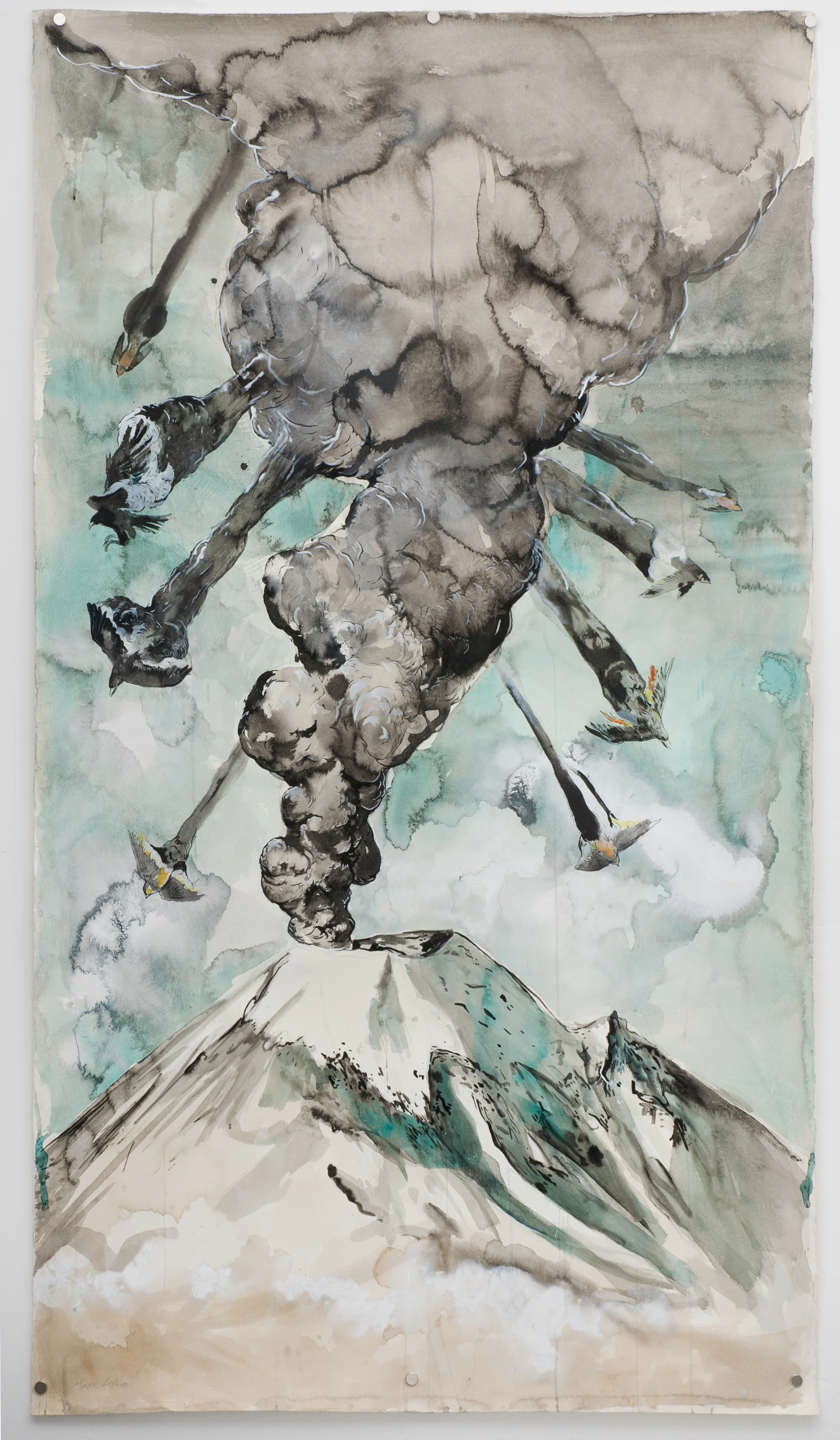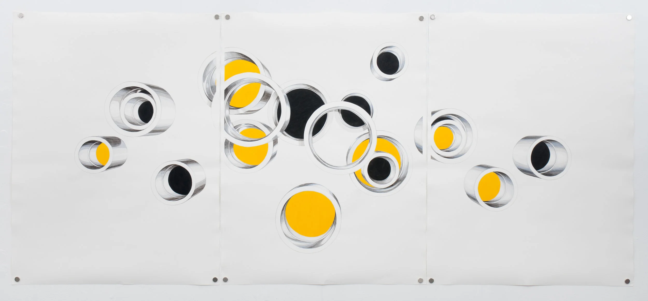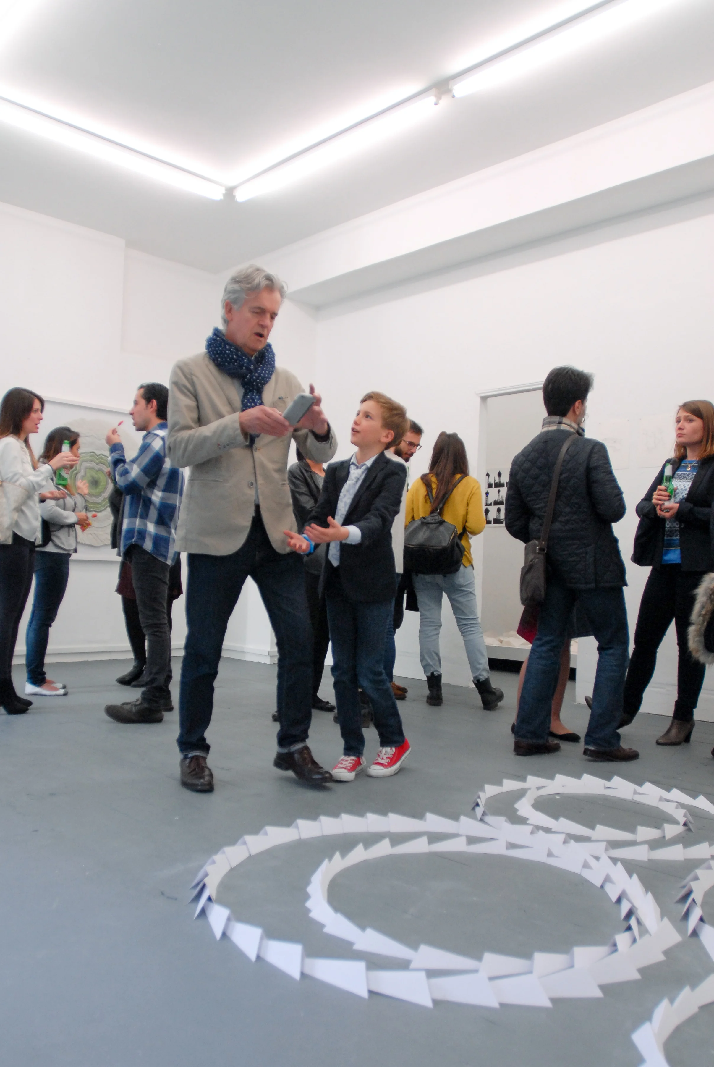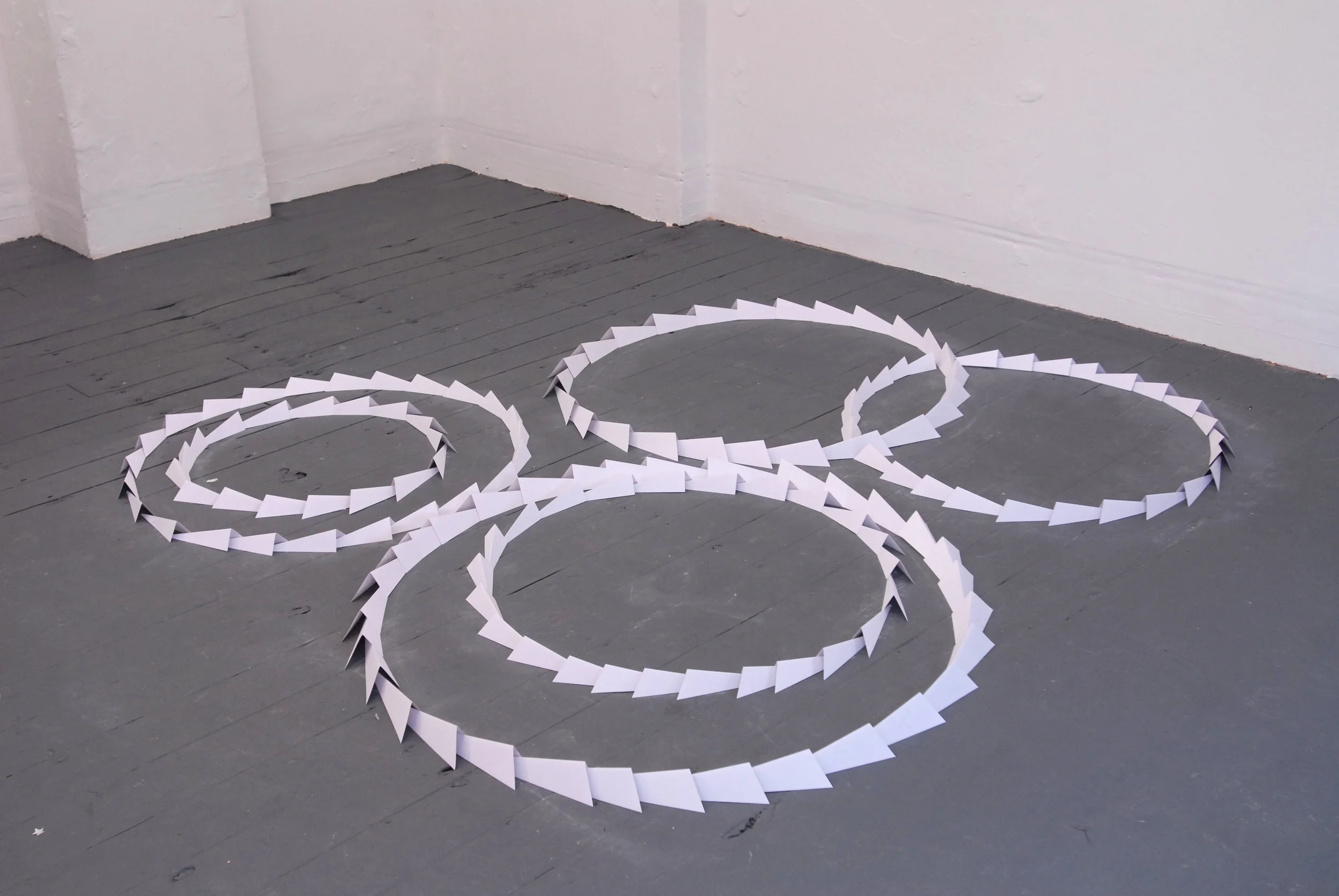 Installation of: Amadeo Azar, Pieza #1, 2015. watercolours and bee wax on folded paper (60). 100 x 400 cm.